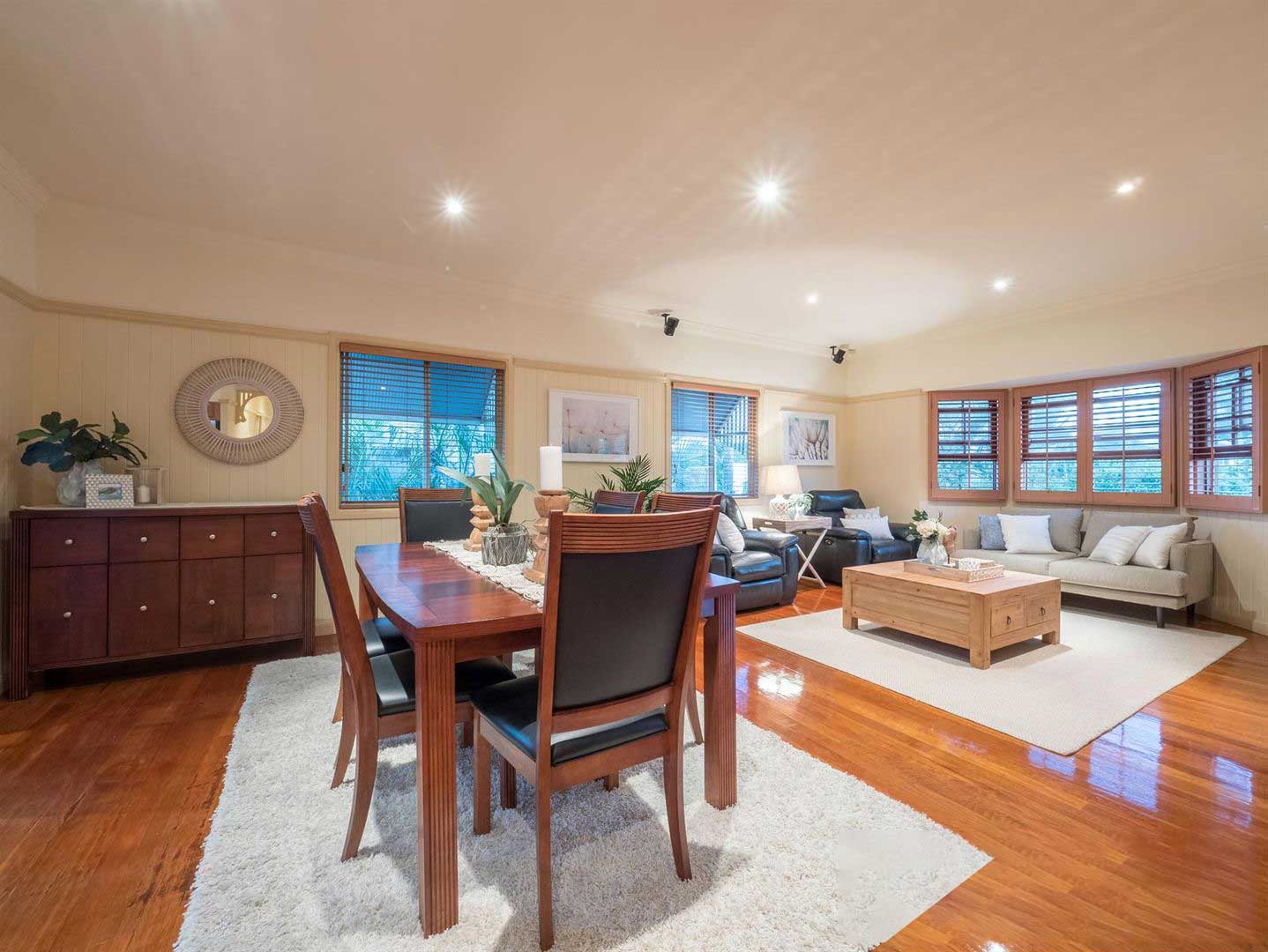 Open plan living/dining welcomes in natural light and breezes.